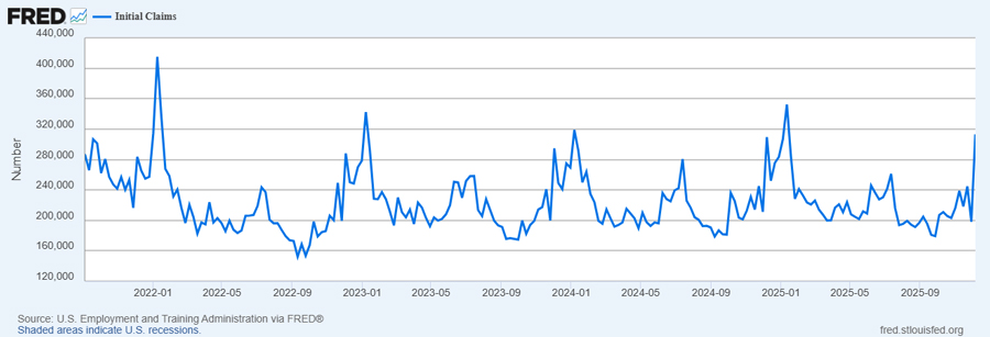 Weekly, not seasonally adjusted claims data has spiked recently, but the current spike does not yet look any different than past spikes that have occurred near year end and continued into the following year. As long as weekly claims data remains in line with recent trends, we expect the labor market will hold up. However, any jump above recent yearly highs could potentially be an early warning sign.