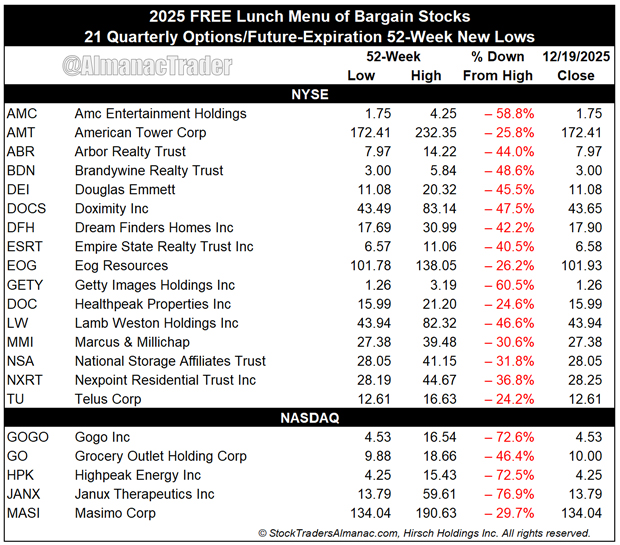 2025 Free Lunch Stocks Served: 21 New 52-Week Lows for Consideration