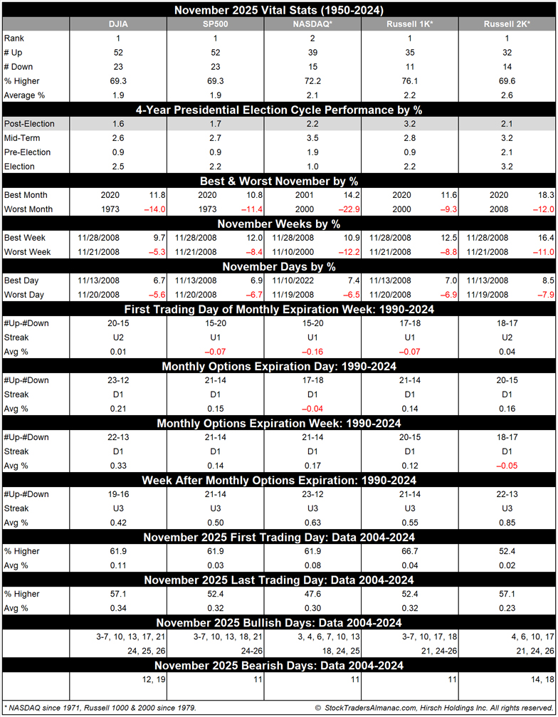 November 2025 Almanac: Best Month for DJIA & S&P 500